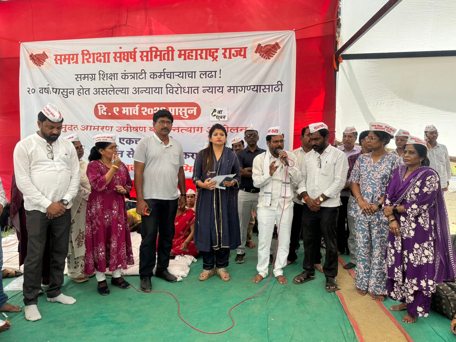 या मागण्यांसाठी आझाद मैदान येथे ९ मार्च २०२६ पासून आमरण उपोषण सुरू असून, आमदार महाले पाटील यांनी आंदोलनस्थळी भेट देत कर्मचाऱ्यांच्या समस्या जाणून घेतल्या. यावेळी त्यांनी आंदोलनकर्त्यांशी सविस्तर संवाद साधत त्यांच्या मागण्यांचा आढावा घेतला व शासन स्तरावर या प्रश्नांचा सकारात्मक विचार व्हावा यासाठी मुख्यमंत्री यांची भेट घेऊन योग्य तो तोडगा काढण्यात येईल, असे आश्वासन दिले.