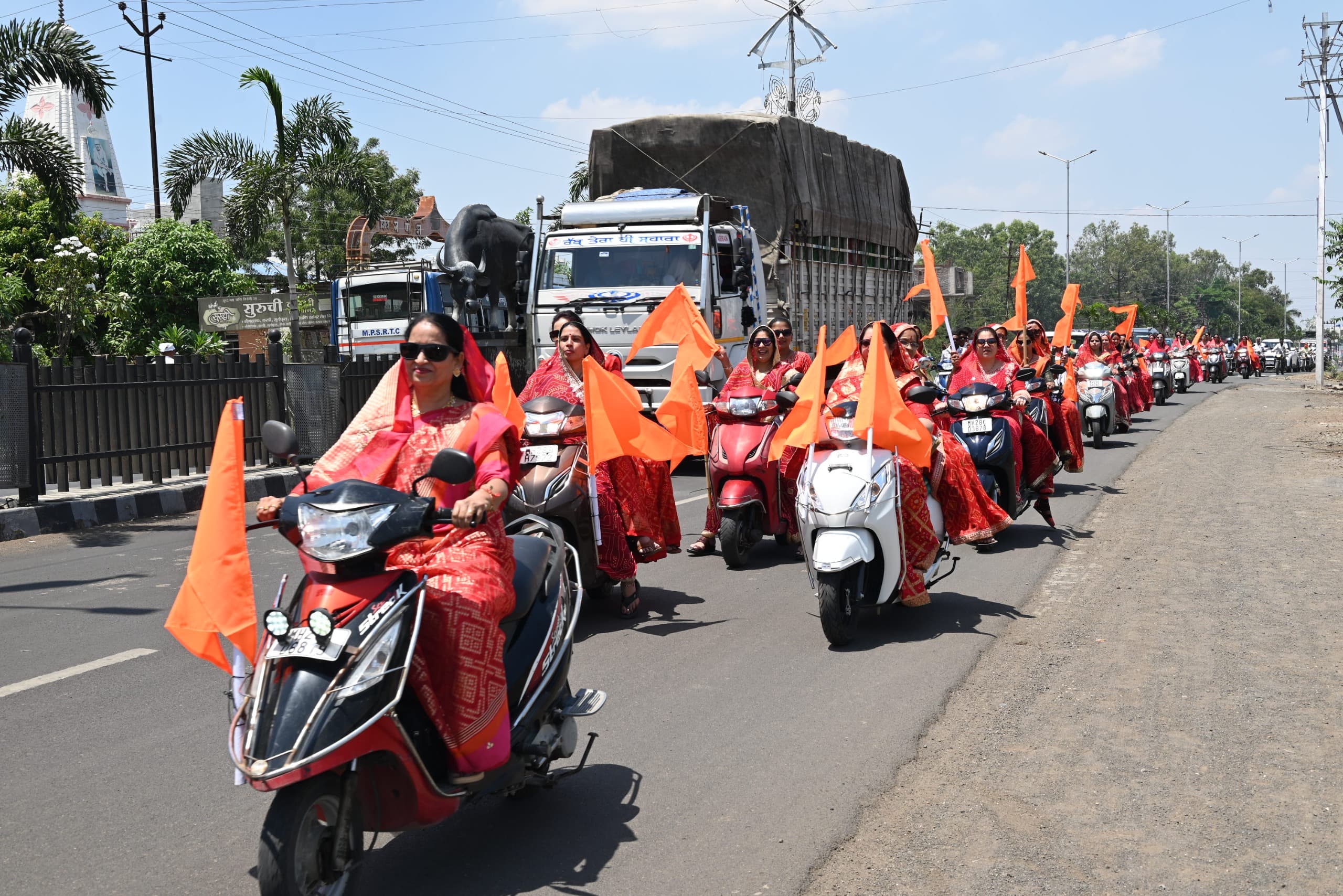 साध्वी सृष्टीलताजीचे शहरात आगमन महिलांनी बाईक रॅली काढुन केले स्वागत